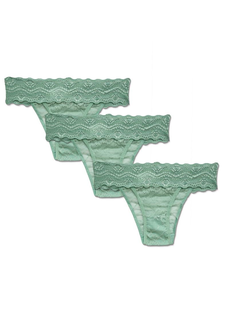 Kit 3 Calcinhas Tanga Em Renda Maya VERDE MENTA
