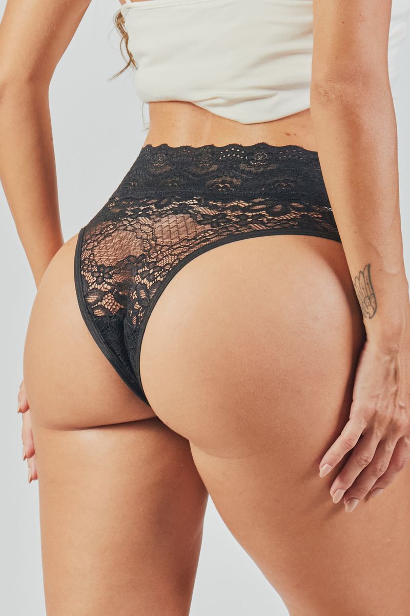 Calcinha Cintura Alta Toda em Renda Maya PRETO