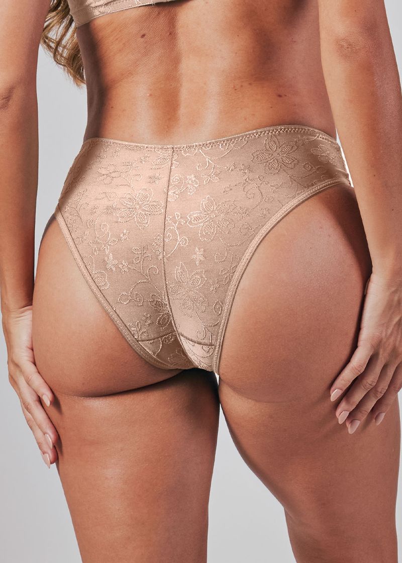 CalcinhasBiquíniCalcinha Biquíni Com Reforço Frontal Em Microfibra Trabalhada Fio Lycra Dália BEIGE FONCÉ