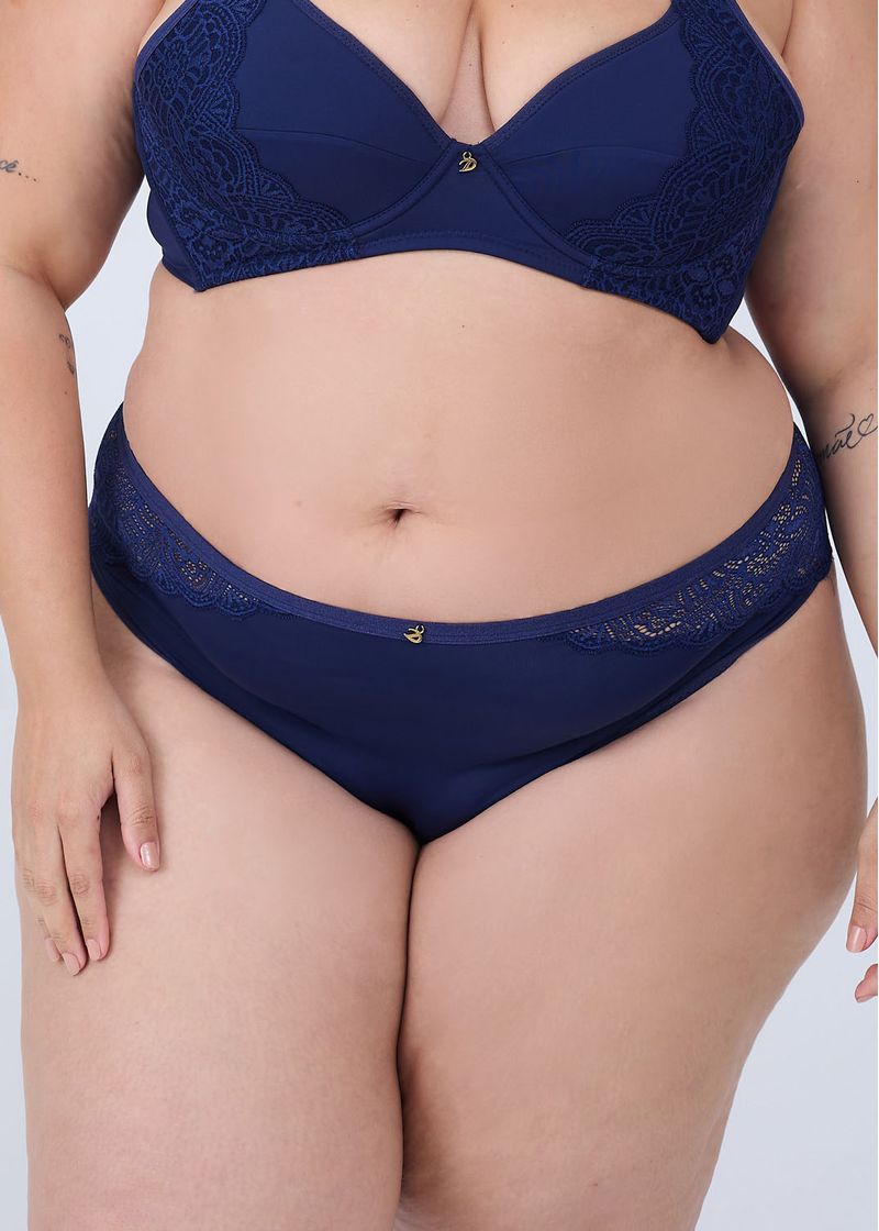 Calcinha Biquíni em Microfibra com Laterais e Costas em Renda Plus Size Safira MARINHO