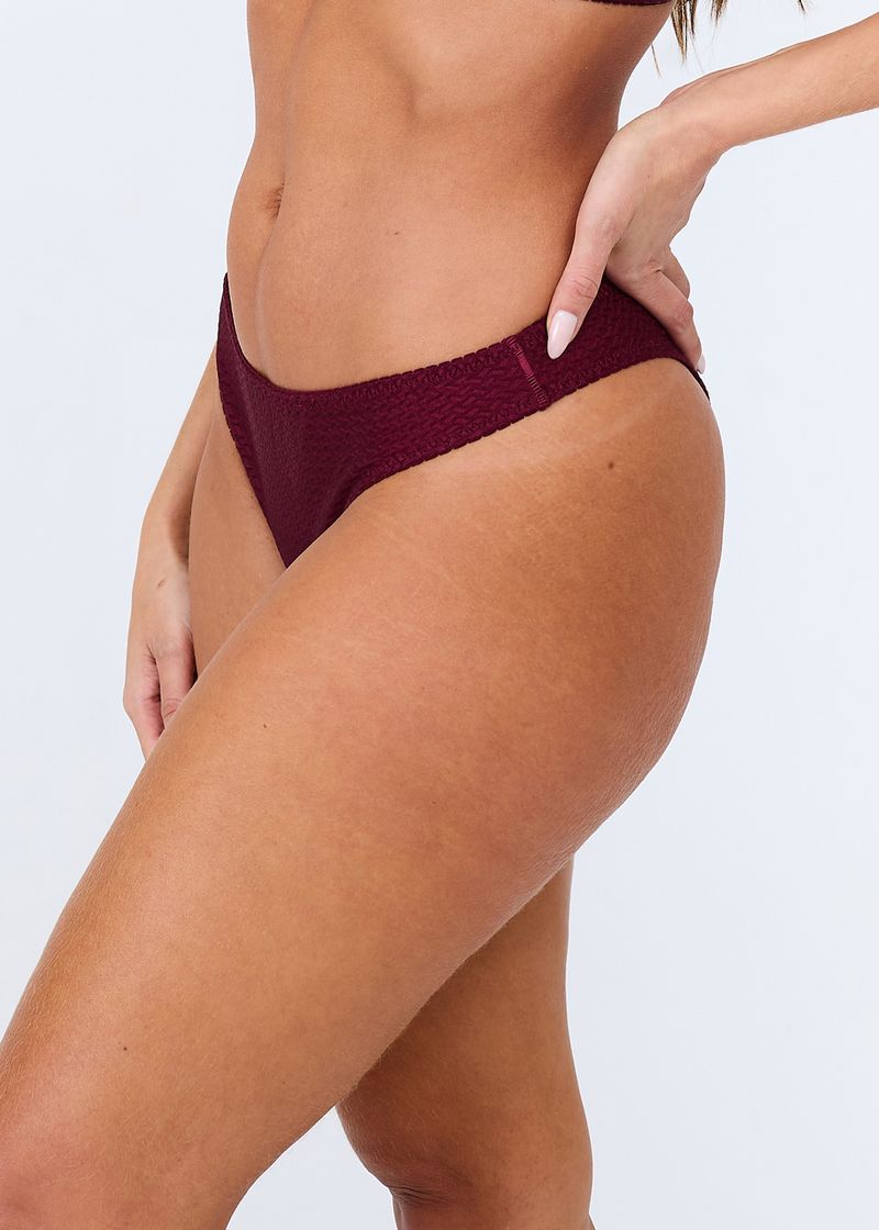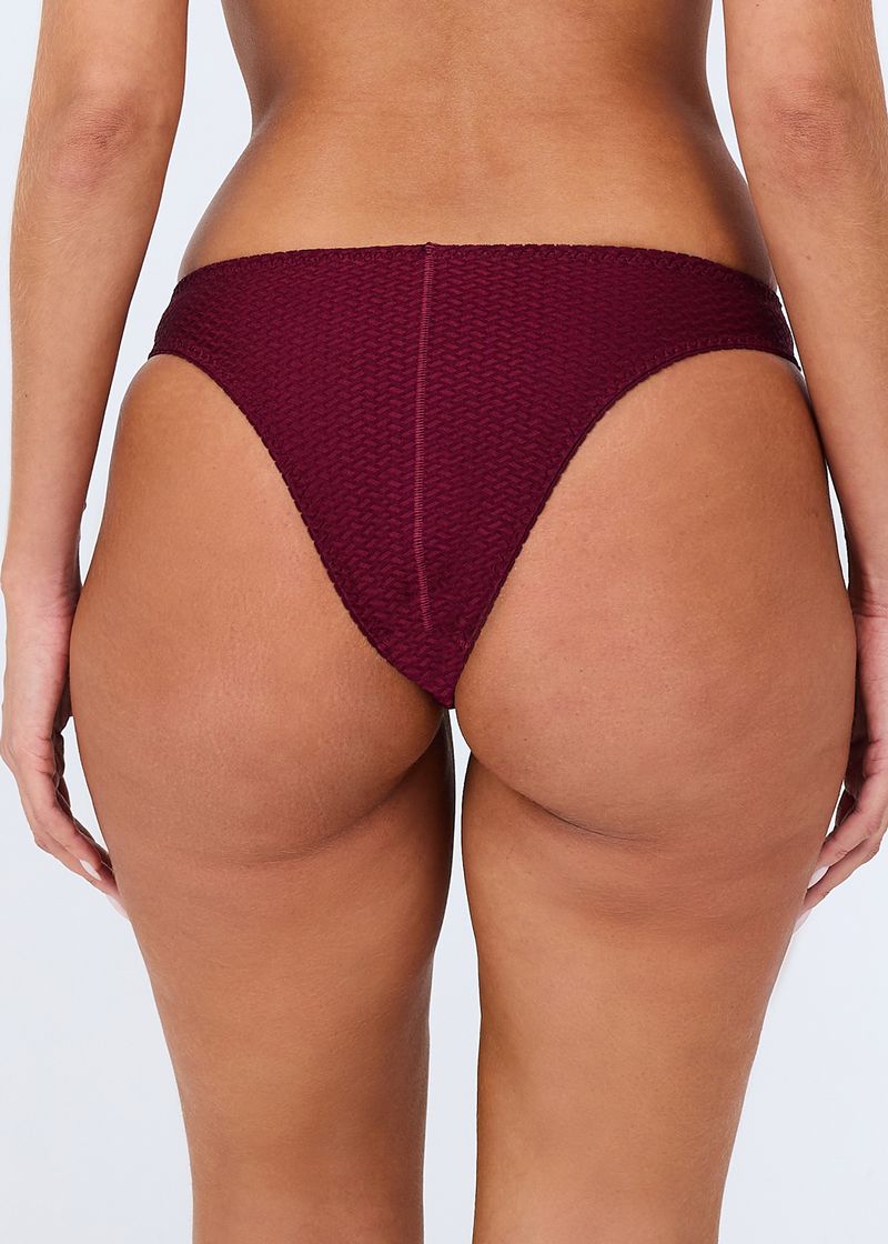 Calcinha Biquíni Lateral Estreita Em Microfibra Trabalhada Fio Lycra Mondrian GRENAT