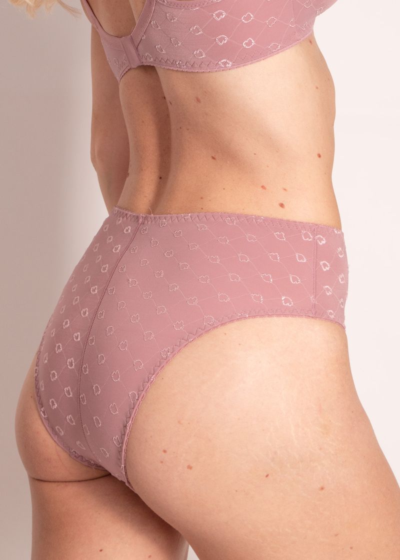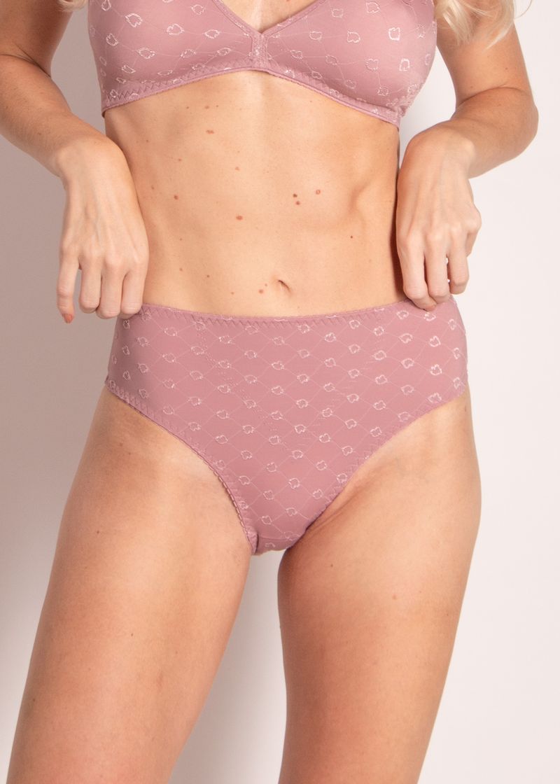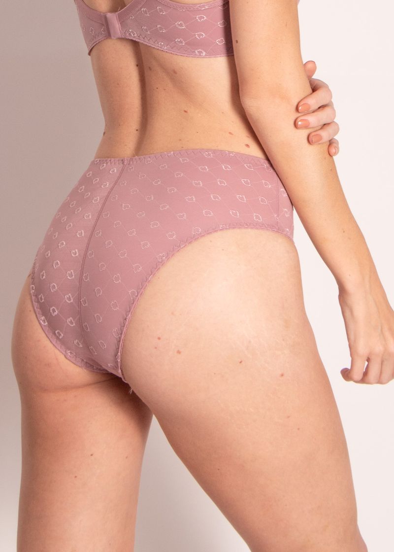 Calcinha Cintura Alta Laterais Médias Com Reforço Frontal Em Microfibra Trabalhada Fio Lycra Cuore ROSE PASSÉ