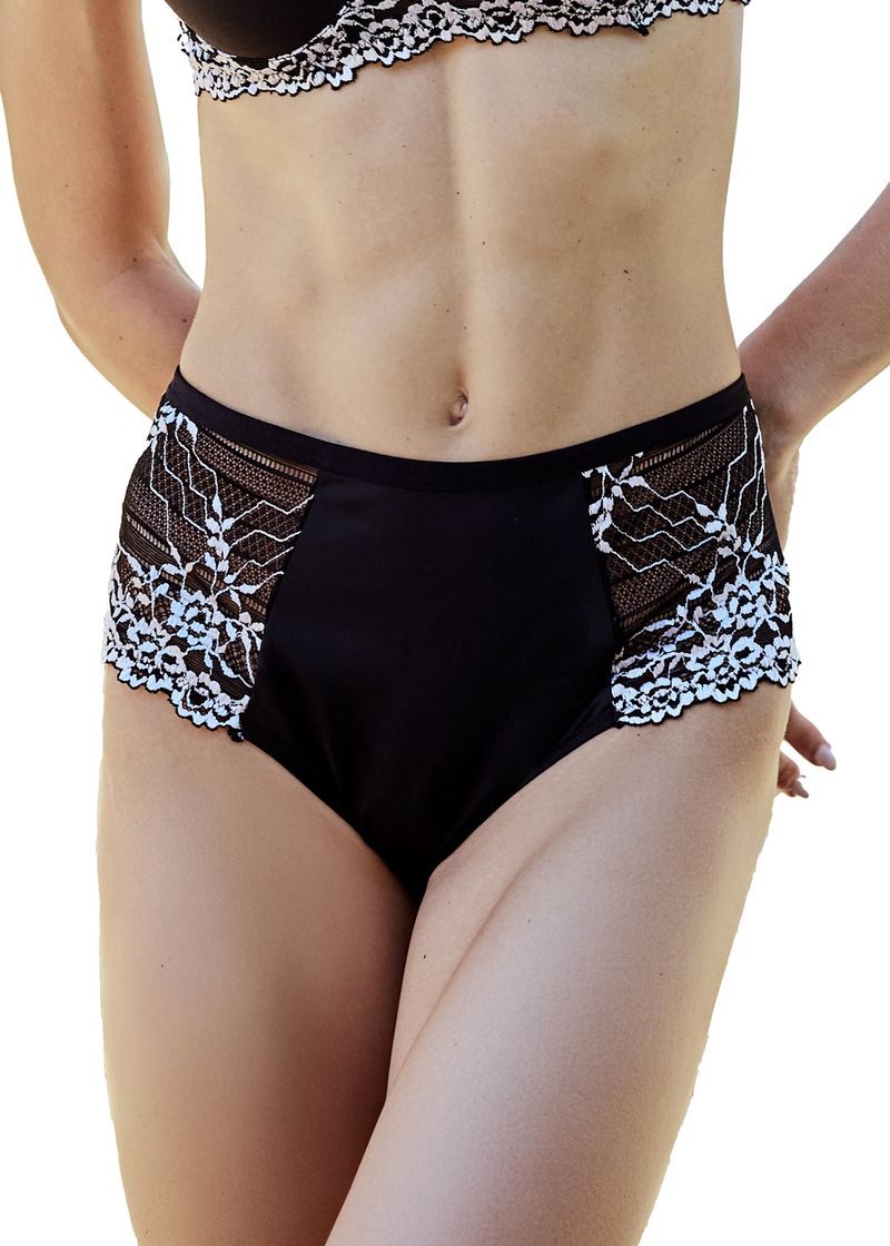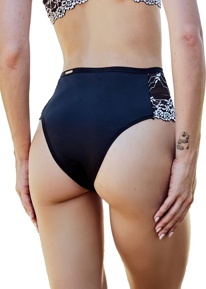 Calcinha Cintura Alta Em Micofibra E Laterais Largas Em Renda Bicolor Carol PRETO