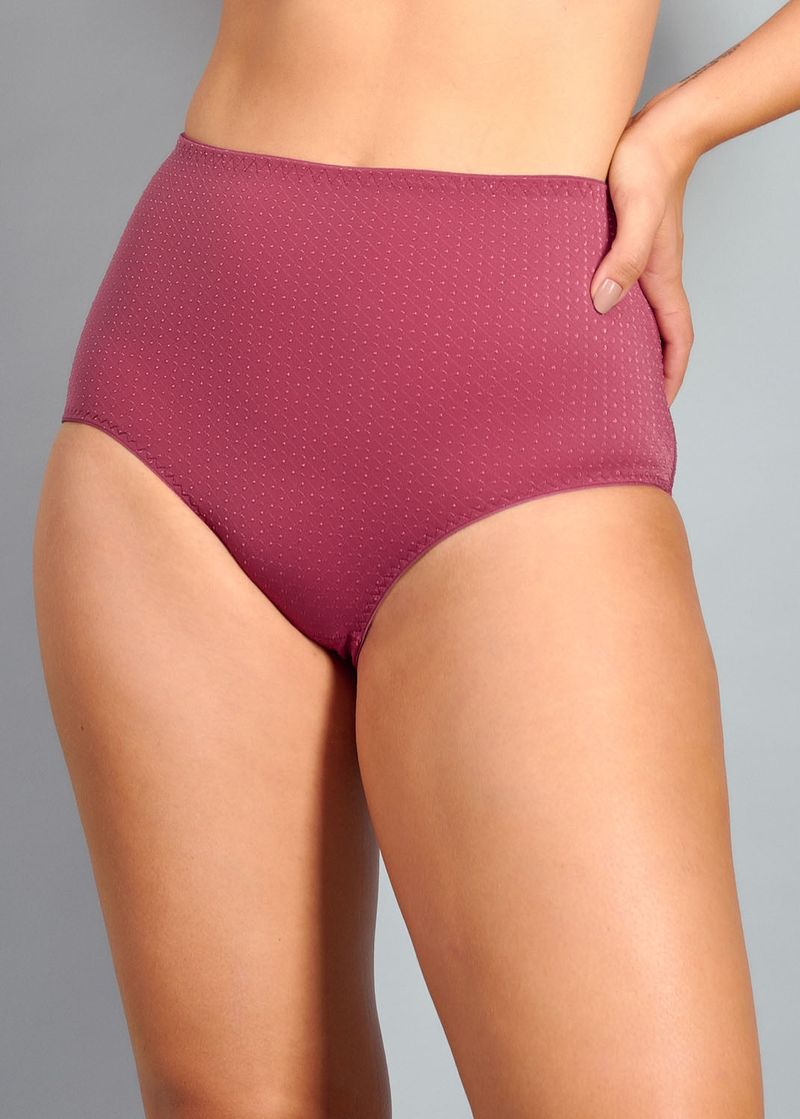 Calcinha Cintura Alta Laterais Largas Em Microfibra Trabalhada Fio Lycra Emotions GRENAT