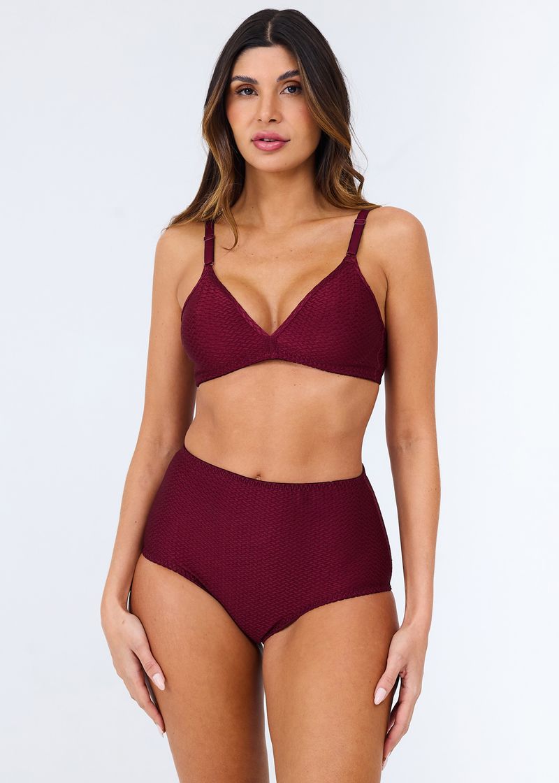 Calcinha Cintura Alta Lateral Larga Em Microfibra Trabalhada Fio Lycra Mondrian GRENAT