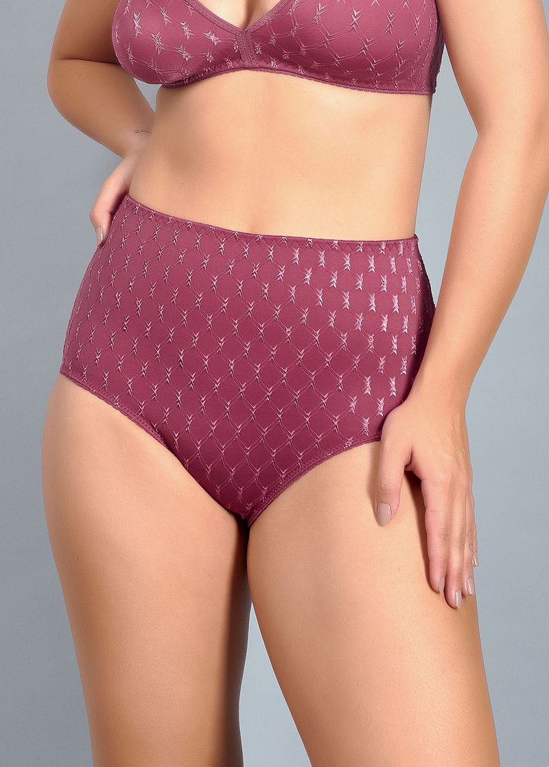 Calcinha Cintura Alta Laterais Largas Em Microfibra Trabalhada Fio Lycra Paris GRENAT