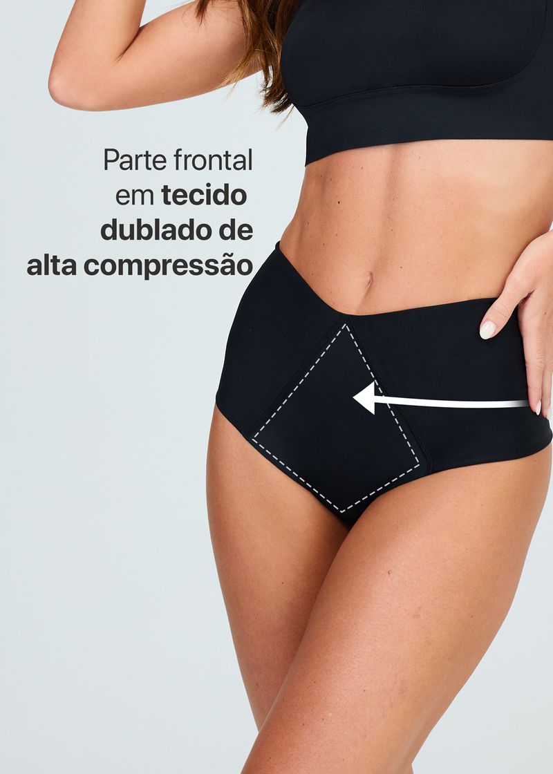 Sua parte frontal em tecido dublado de alta compressão ajuda a suavizar e definir o abdômen, proporcionando efeito modelador imediato.
