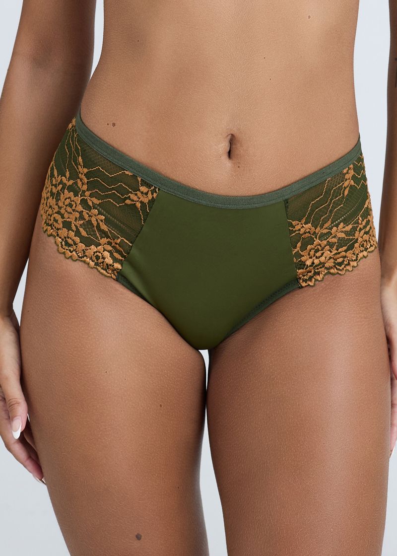 Calcinha Cintura Alta Em Micofibra E Laterais Largas Em Renda Bicolor Carol VERDE FLORESTA