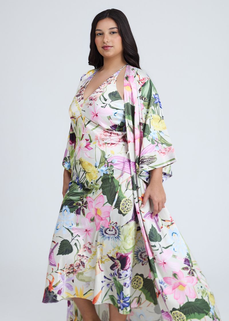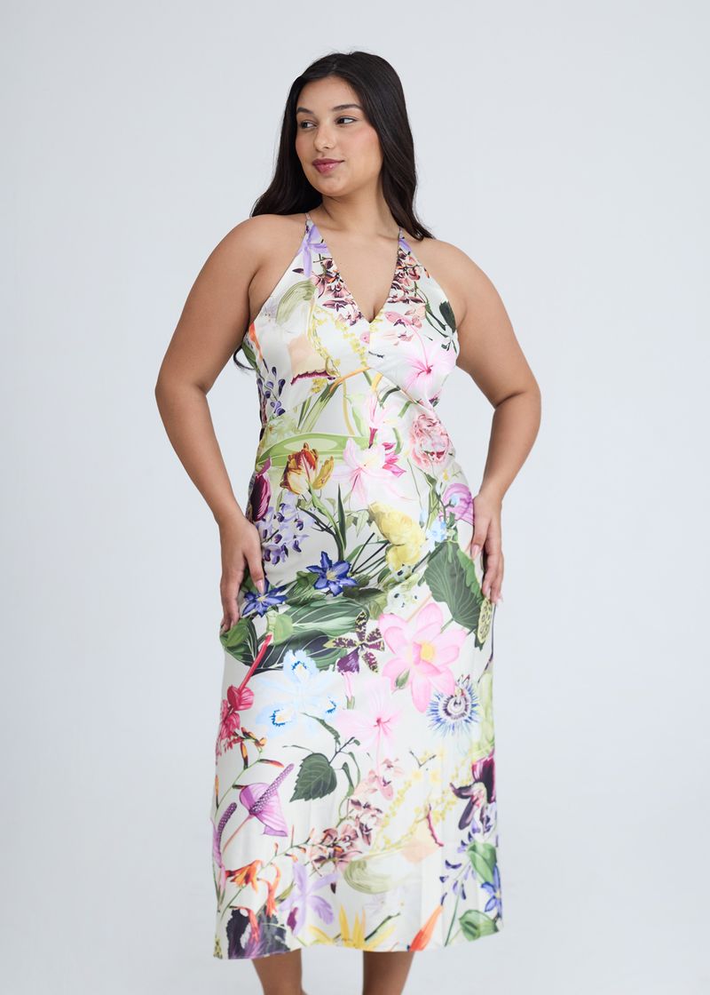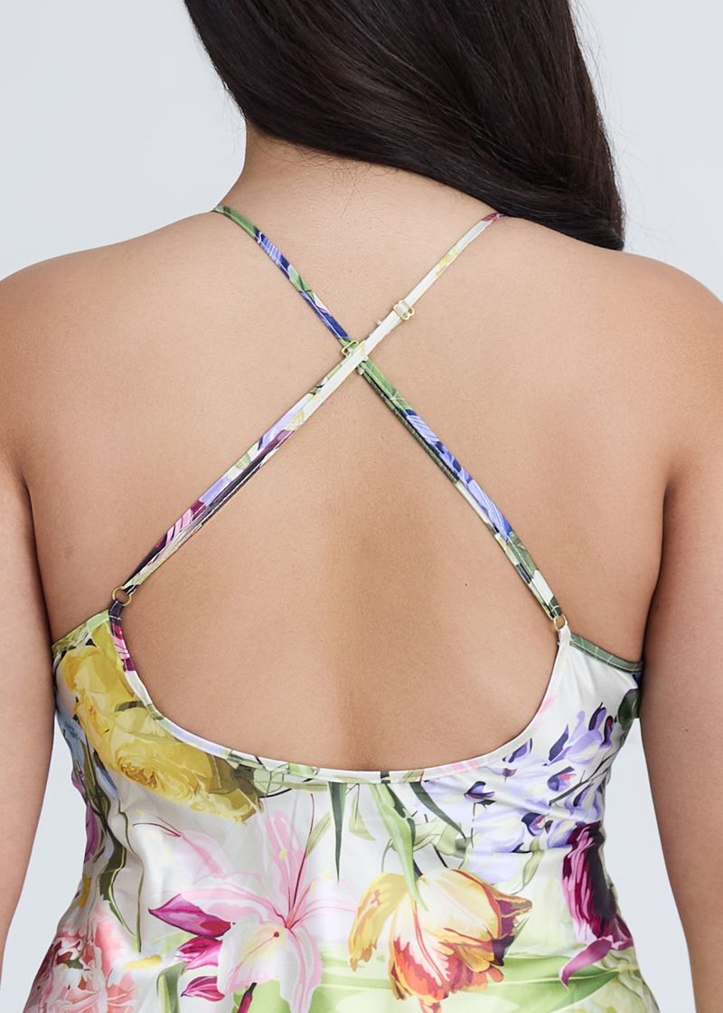 A Camisola Alça Longa Estampada confeccionada em cetim com elastano ultra leve com toque sedoso, traz uma estampa vibrante floral.
