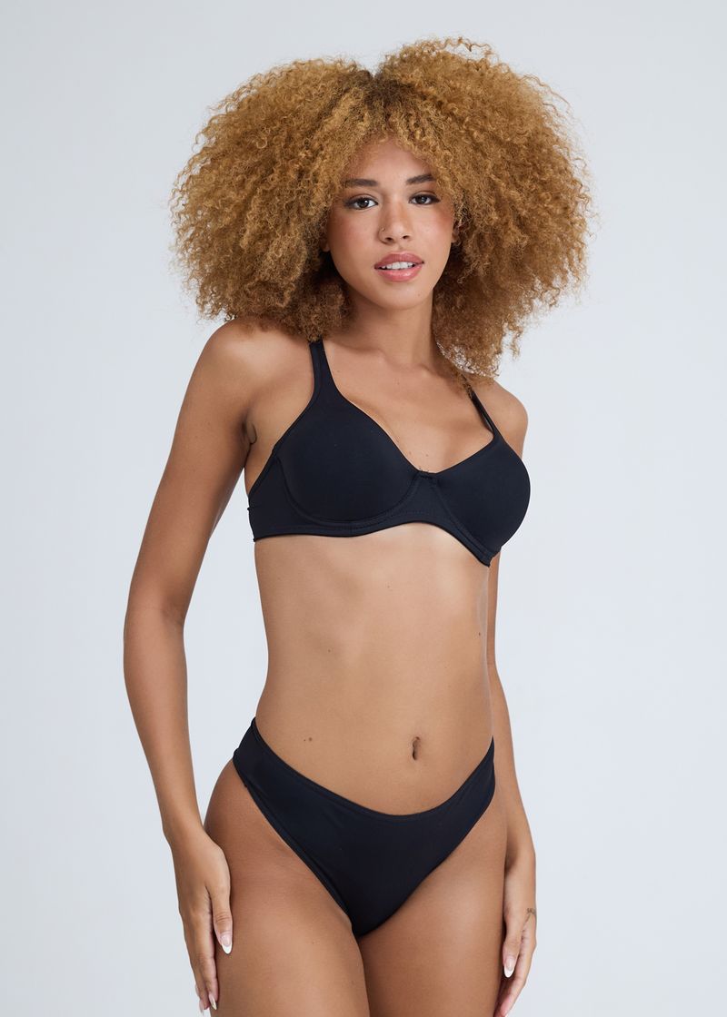Conjunto Sutiã Básico sem Bojo e com Aro e Calcinha Biquíni Fio Cotidien PRETO