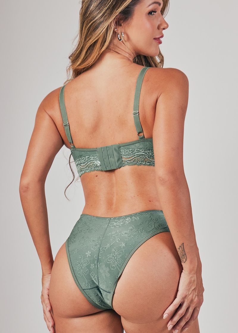 Conjunto Sutiã Triangulo e Calcinha Cintura Alta Em Microfibra Trabalhada Fio Lycra Dália OLIVE