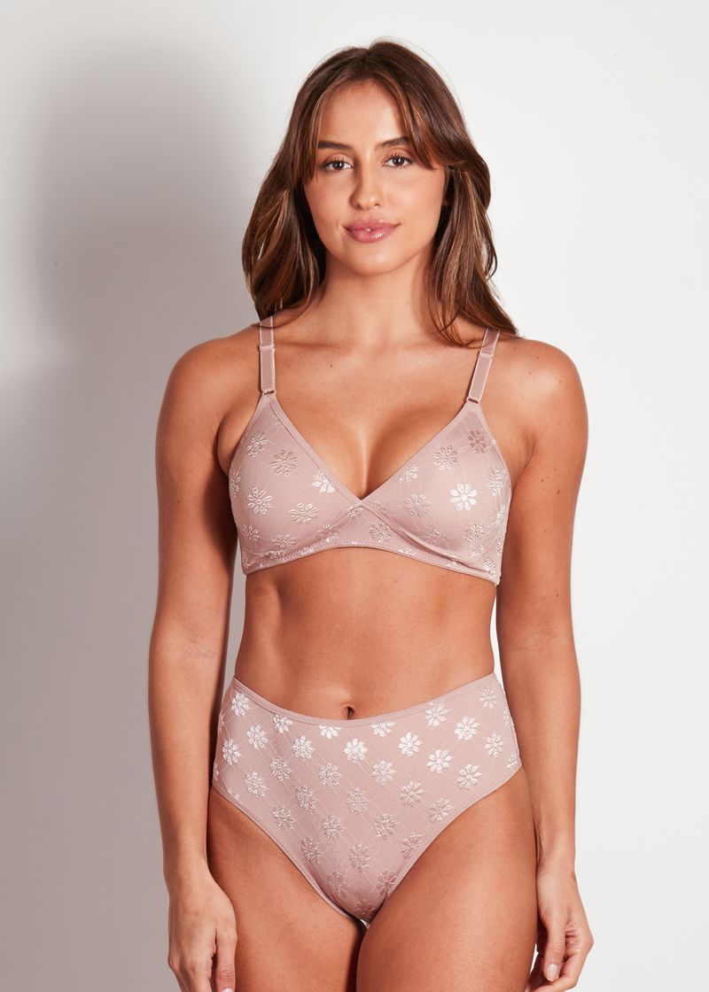 Conjunto Sutiã Triângulo Sem Bojo e Calcinha Cintura Alta Com Reforço Frontal Summer Flower CASTANHA