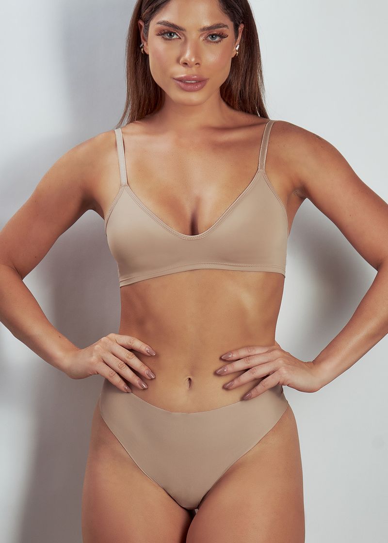 Conjunto Sutiã Triângulo e Calcinha Fio Sweet Skin BEIGE FONCÉ