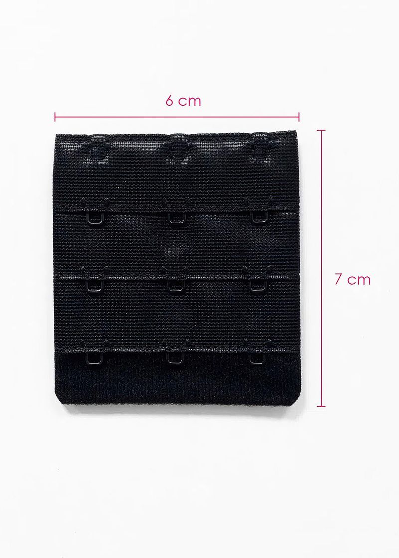 Extensor Largo de três colchetes que permitem aumentar a circunferência do sutiã, adaptando a peça aos seios para melhor conforto. Dimensões: 7 cm largura x 6 cm altura.