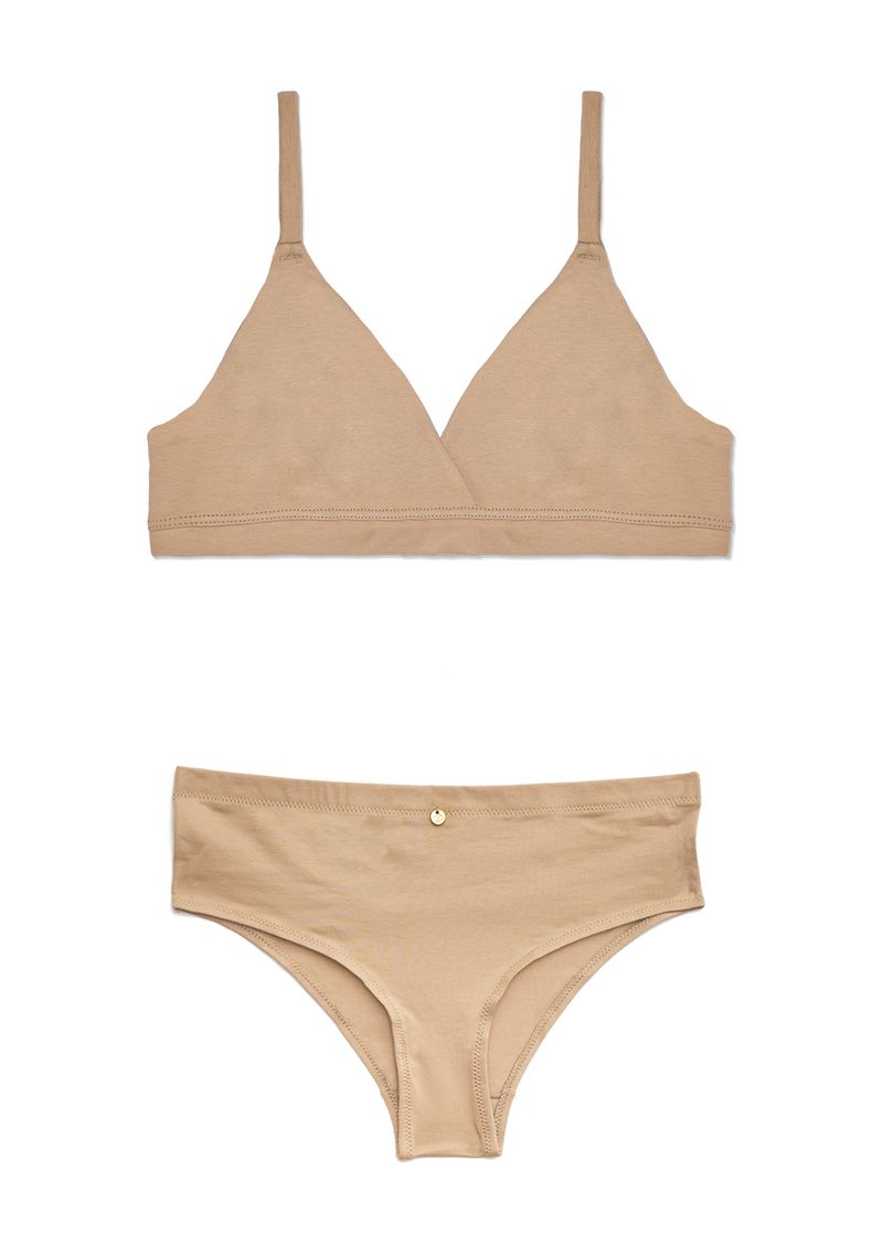 Conjunto Sutiã Triângulo e Calcinha Biquíni Larga Cleo BEGE