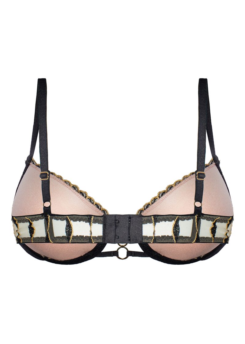 Sutiã com bojo e aro confeccionado em tule bordado exclusivo com fios dourados que proporciona um brilho sutil e sofisticado à peça.
