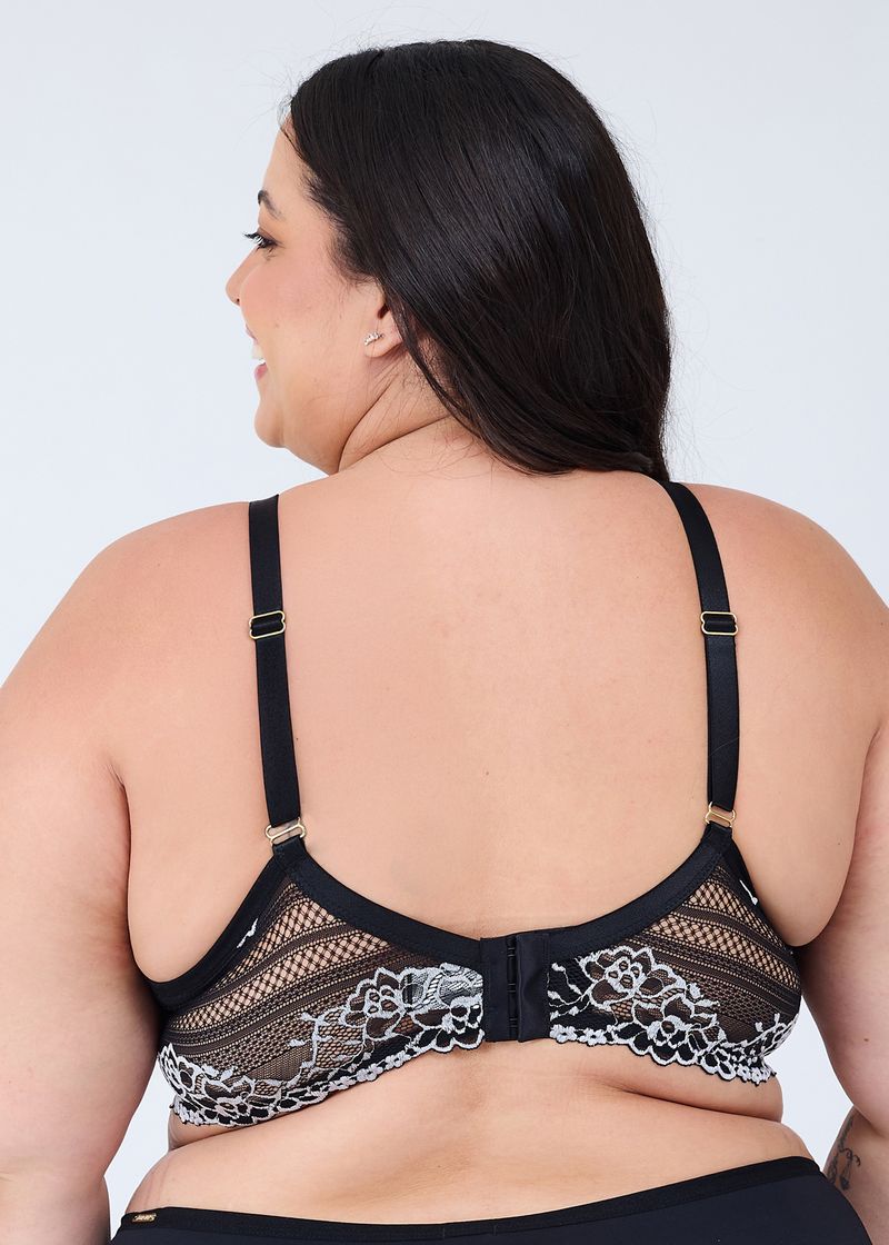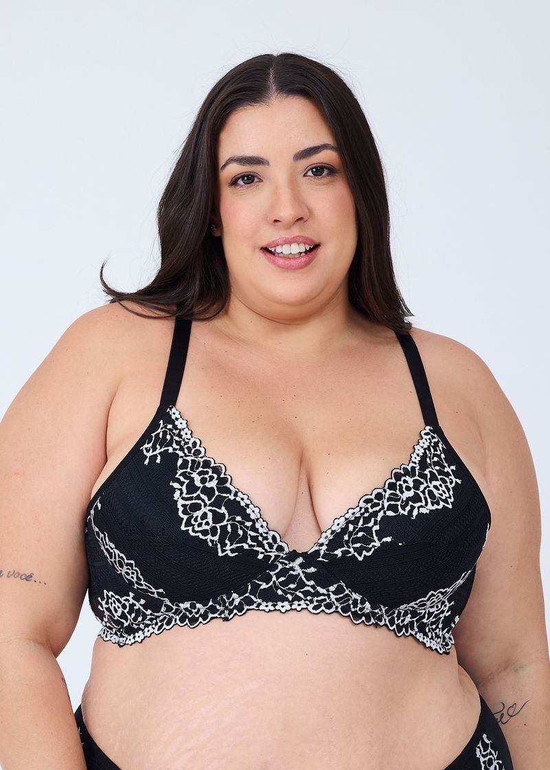 Sutiã Tradicional Com Bojo Em Microfibra e Renda Bicolor Plus Size Carol PRETO