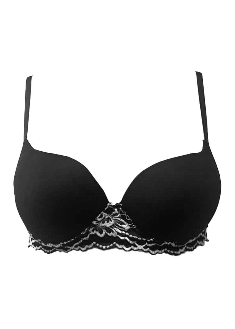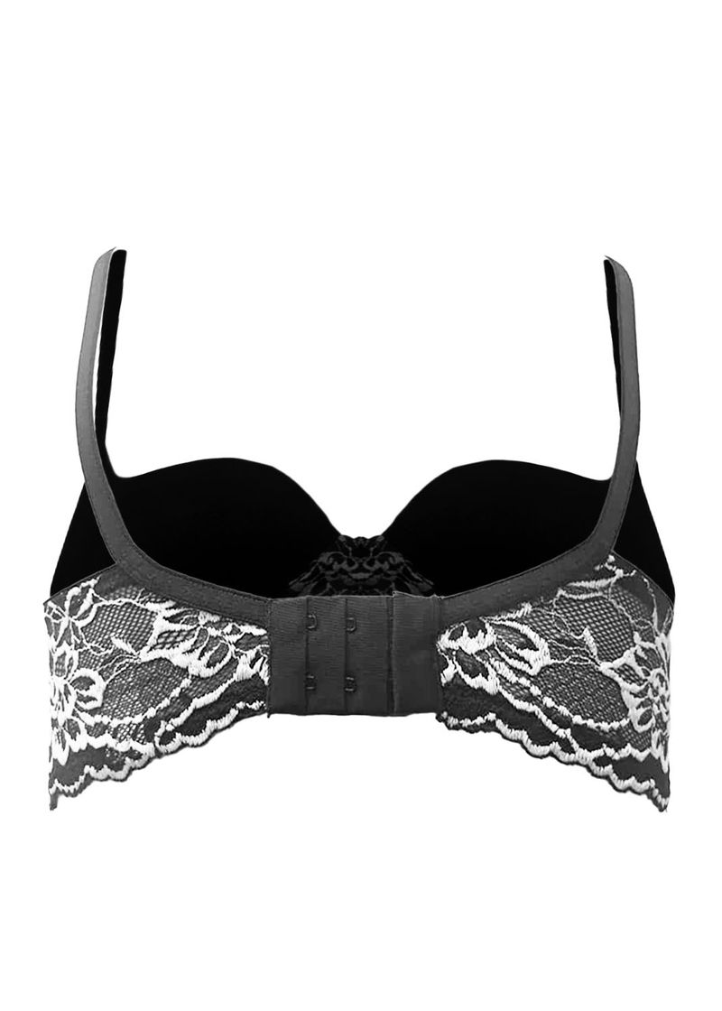 Sutiã Tradicional com Bojo em Renda Bicolor Petale Noir PRETO