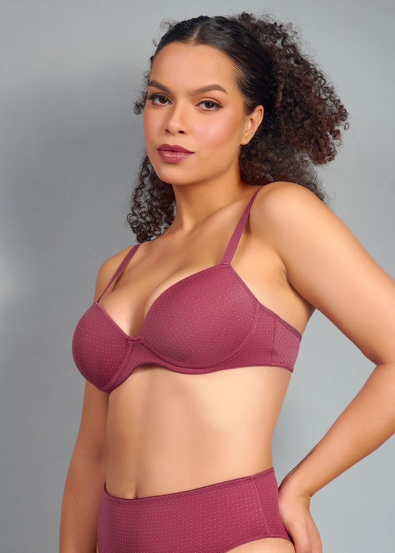 Sutiã Tradicional Com Bojo Estruturado E Aro Em Microfibra Trabalhada Fio Lycra Emotions GRENAT