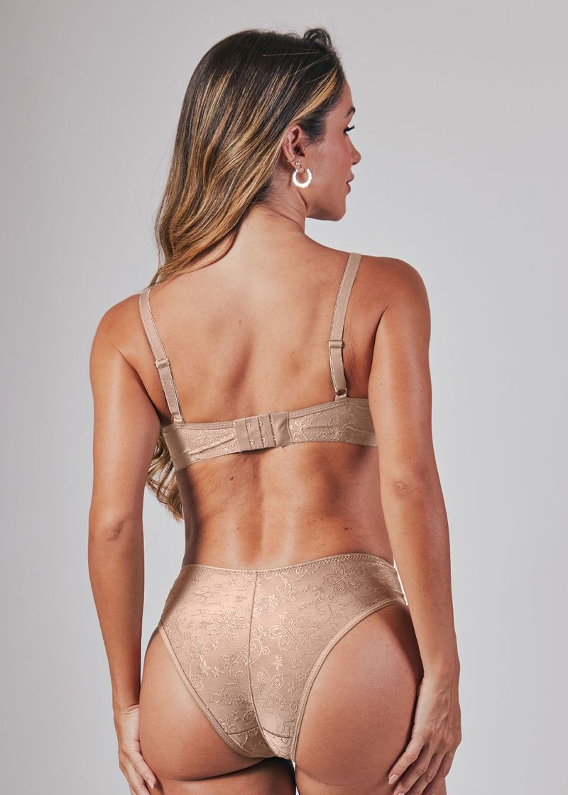 Sutiã Triângulo Em Microfibra Trabalhada Fio Lycra Dália BEIGE FONCÉ