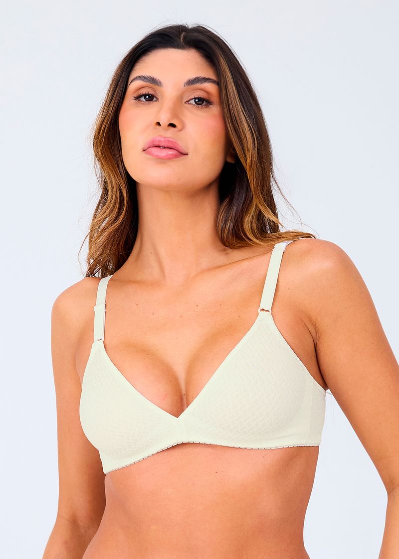 Sutiã de modelagem básica, sem bojo, mas com reforço e anatomia moldada.