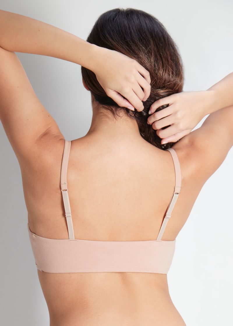 Top sem aro, mas com bojo soft, que oferece uma melhor acomodação dos seios sem perder o conforto e flexibilidade.